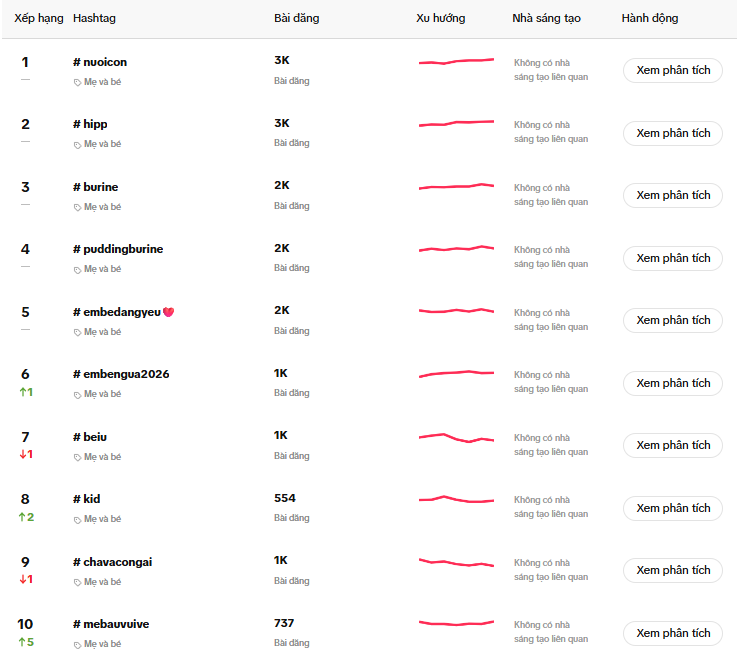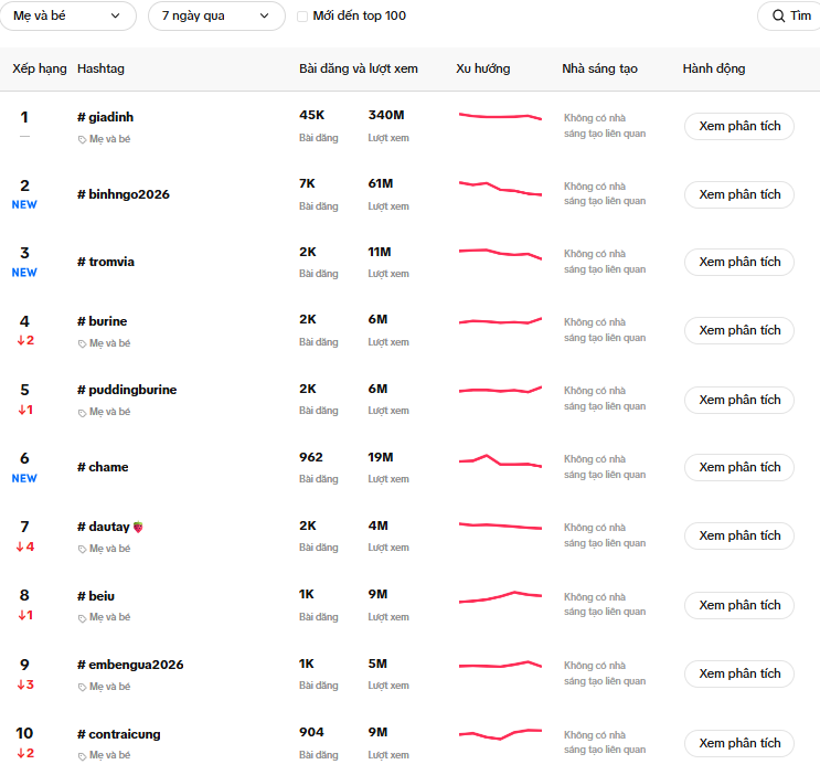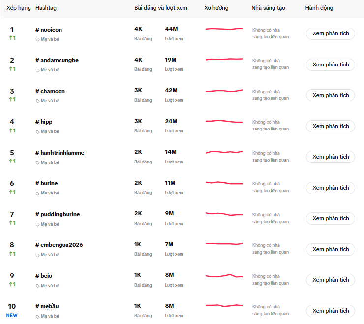 Top 10 hashtag Mẹ & Bé trên tiktok