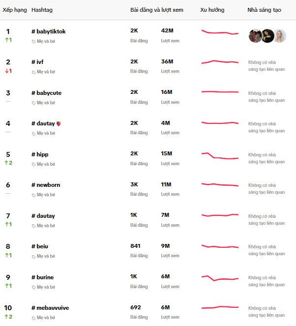 Top 10 hashtag ngành mẹ bé kênh Tiktok