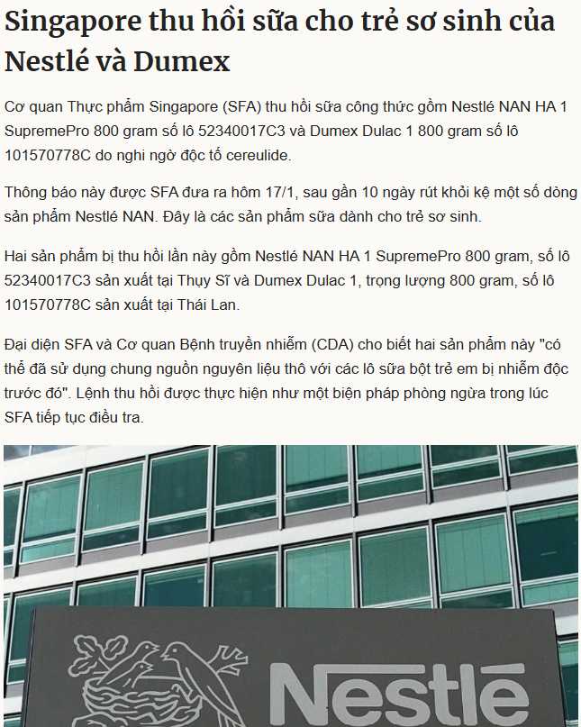 Link nguồn: https://vnexpress.net/singapore-thu-hoi-sua-cho-tre-so-sinh-cua-nestle-va-dumex-5007044.html